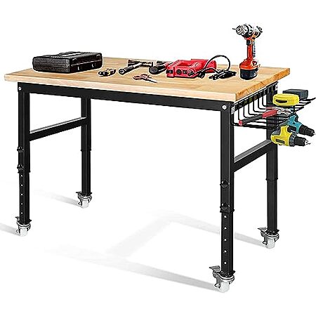 Reliancer via Amazon has 47.2"x 23.6" Bamboo Wood Garage Workbench w/Adjustable Height 25.4"-35.2" Multifunctional Workstation on Wheels 1500 Lb Capacity for $99.88. Shipping is free.