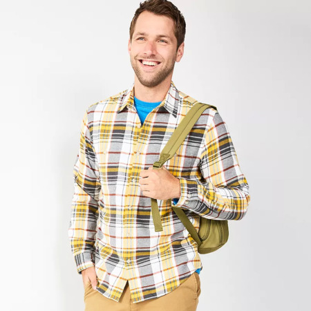 Sonoma Goods For Life Men's Flannel Button-Down Shirt (Gold Black Plaid, Sizes - Small, Medium, & Large only) $6.30 + Free Shipping on $49+