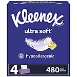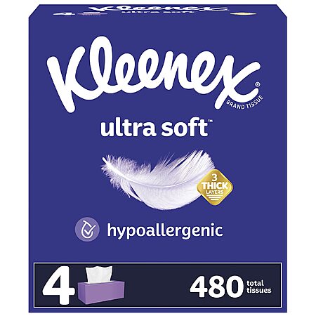 Kleenex Ultra Soft Facial Tissues, 4 Flat Boxes, 120 Tissues per Box, 3-Ply (480 Total Tissues) ADD 3 TO CART - $10.94