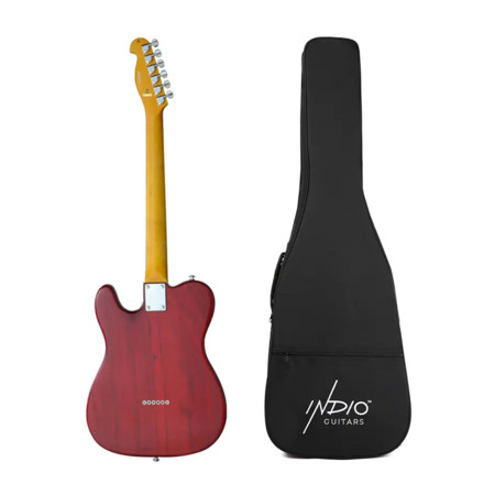 Model: Indio by Monoprice Retro DLX Plus Solid Ash Electric Guitar with Gig Bag, Cherry Red Burst