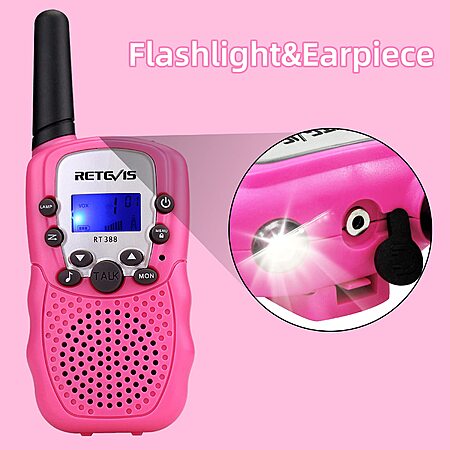 2-Pack Retevis RT-388 Kids' Rechargeable Walkie Talkies w/ Built-In Flashlight (Pink) $13.99 + Free Shipping w/ Prime or on $35+
