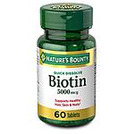 60-Count 5000mcg Nature's Bounty Biotin Vitamin Supplement Quick Dissolve Tablets 2 for $5.37 ($2.69 each) w/ S&S + Free Shipping w/ Prime or on $35+