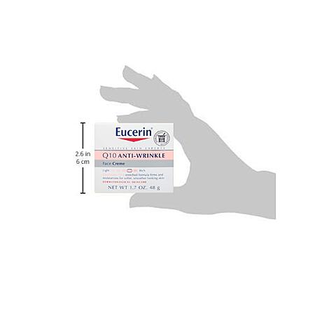 • Eucerin Q10 face cream for wrinkles is fragrance, alcohol and dye free, and can be used alone or under make-up