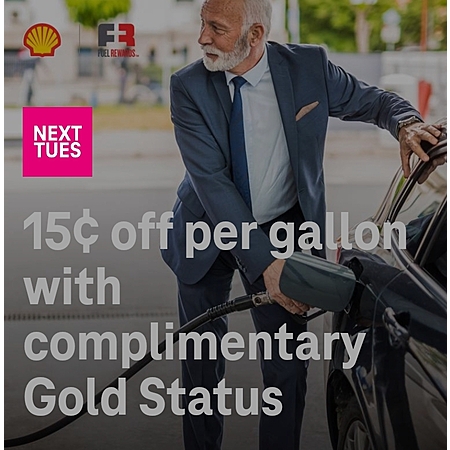 • Shell: 15 Cents Off Per Gallon w/ Complimentary Gold Status