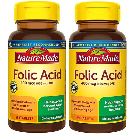 Amazon [amazon.com] has Buy 1 Get 1 Free 250-Count Nature Made Folic Acid 400 mcg Tablets for $6.24 ($3.12 each)when you checkout via subscribe & save (instructions below). Shipping is free w/ Prime or on orders $25 or $35+ orders (minimum requirement varies by location).