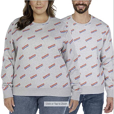 Kirkland Signature crewneck that has the .97 price, which usually indicates a decent sale at Costco. Shipping is free. I have the black one and the logo is embroidered, I cannot speak for the gray one.