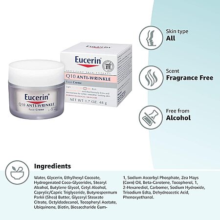 1.7-Oz Eucerin Face Cream (Fragrance Free): Q10 Anti-Wrinkle 2 for $8.70 ($4.35 each), Q10 Anti-Wrinkle + Pro-Retinol 2 for $12.30 ($6.16 each) w/ S&S + FS w/ Prime or on $35+