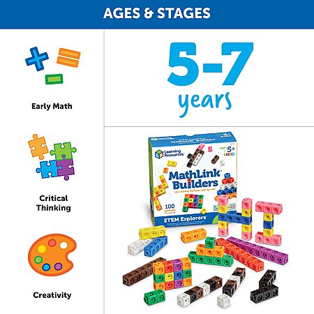 100-Piece Learning Resources STEM Explorers MathLink Builders Linking Cubes