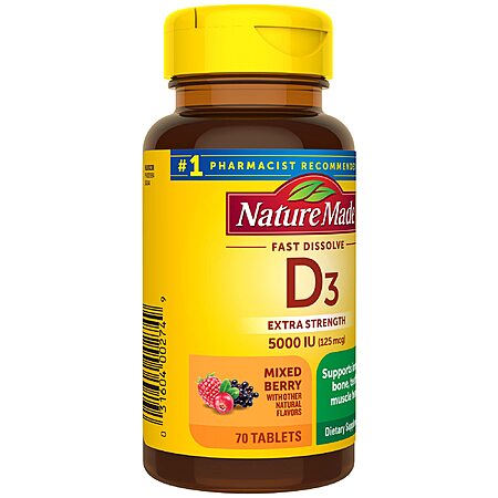 Amazon has 70-Count Nature Made Extra Strength Vitamin D3 5000IU (125mcg) Fast Dissolve Tablets Supplement on sale for $16.99 - $7 -> now - $7.72 automatically applied at checkout - 40% off when you 'clip' the coupon on the product page - 5% off when you checkout via Subscribe & Save = $2.34 -> now $2.02. Shipping is free w/ Prime or on $25+ or $35+ orders (minimum requirement varies by location).