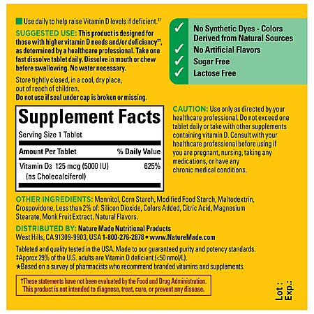 Model: Nature Made Fast Dissolve D3 Extra Strength Mixed Berry 5 000 Iu (125 mcg) - 70 Tablets