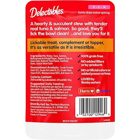 Amazon has 12-Count Hartz Delectables Stew Lickable Wet Cat Treats (Various) on sale from 2 for $25.88 - Buy 1, Get 1 Free discount applied when you click the redeem button on the product page - 5% off when you checkout via Subscribe & Save = 2 for $11.65. Shipping is free w/ Prime or on $25+ or $35+ orders (minimum requirement varies by location).