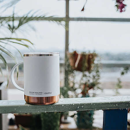 • 12 oz. double-walled, vacuum-insulated stainless steel mug with ceramic coating inside