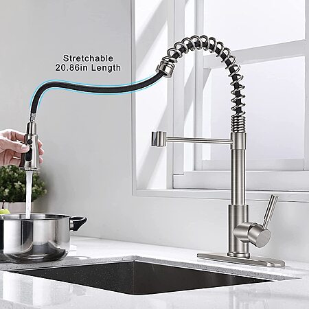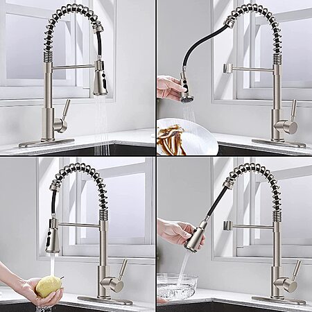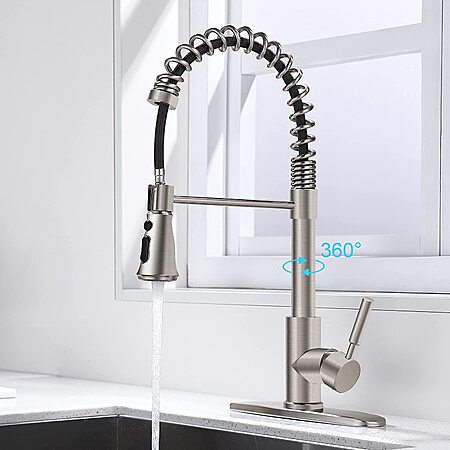 Amazon[amazon.com] has SOKA Kitchen Faucet w/ Pull Down Sprayer Single Handle (Brushed Nickel + S) on sale for $27.60. Shipping is free w/ Prime or on $35+.