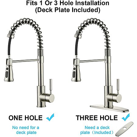 Model: SOKA Kitchen Faucet with Pull Down Sprayer Single Handle RV Commercial High Arc Touch Farmhouse Kitchen Faucets Fit for 1 & 3 Hole with Deck Plate Industrial Style, Brushed Nickel