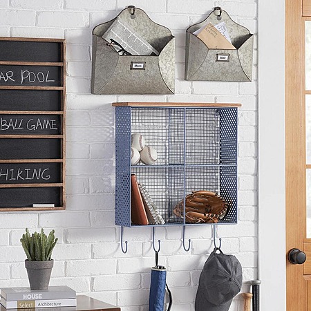 StyleWell Metal Wall-Mount Storage Shelf w/ 4 Hooks & Cubbies (White or Steel Blue) $24.52 + Free Shipping