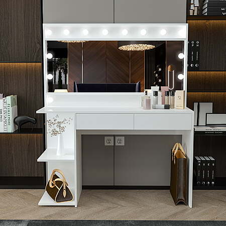 56" x 47" Ember Interiors Emery Modern Painted Vanity Table W/ LED Lights (White) $187 + Free Shipping