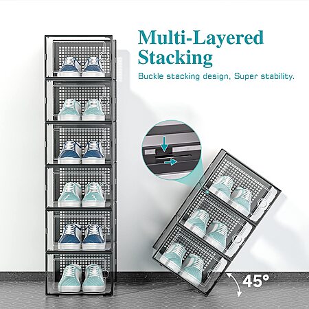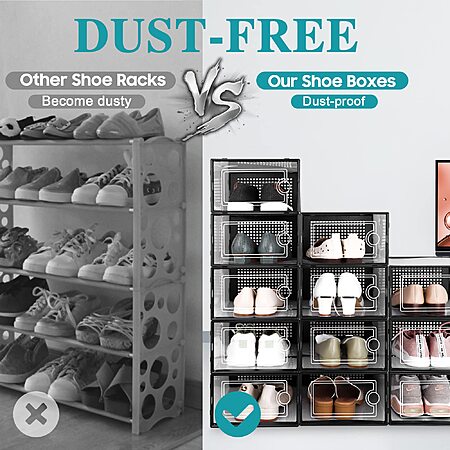 12-Pack Kuject Drop Front Clear Stackable Shoe Organizer Storage Bins w/ Lids