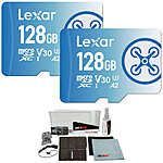 2-Pack 128GB Lexar FLY microSDXC A2 V30 Memory Cards w/ Bonus Accessories