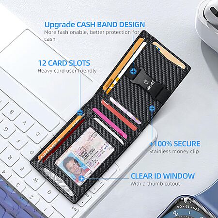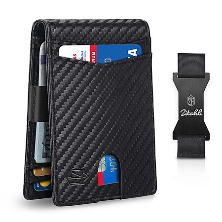 Zitahli Slim Money Clip Wallets for Men, Minimalist Leather Bifold RFID Blocking Mens Front Pocket Wallet with 12 Card Slots Gift Box Black $7.49