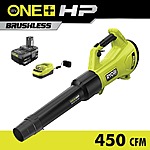 RYOBI ONE+ HP 18V Brushless Whisper Series 130 MPH 450 CFM Cordless Battery Leaf Blower with 4.0 Ah Battery and Charger $149 at Home Depot