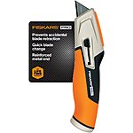Fiskars Pro Retractable Utility Knife w/ CarbonMax Blade and Easy Hinge Open (770020-1001) for