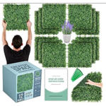 12-Piece 20" x 20" (33 sq ft Coverage) Creative Space Indoor/ Outdoor Artificial Boxwood Grass Wall Panels Backdrop for