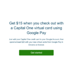 Get $15 when you check out with a Capital One virtual card using Google Pay