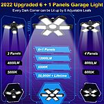 【6+1panels upgrade Design】The garage light is newly designed with 6+1 adjustable panels, which perfectly solves the problem of uneven light between 3 panels and 4 panels, making the area more comfortable for vision