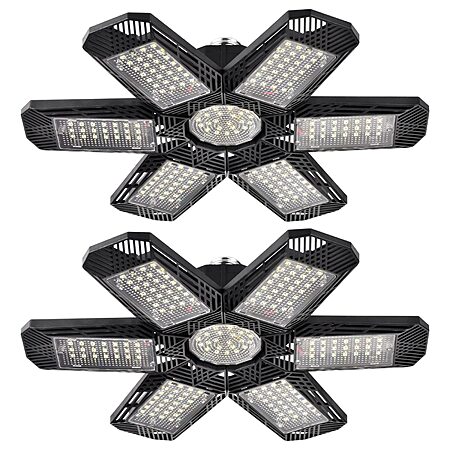 Homelazy via Amazon [amazon.com] has the 2 Pack LED Garage Lights, 120W 12000LM 6500K Deformable Ceiling Light with 6+1 Multi-Position Panels, Shop Light for Garage, Basement, High Bay Light Support E26/E27 Socket(Black, Type A) for $16.19 with free shipping for Prime Members