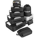 Veken via Amazon has 8-Piece Veken Packing Cubes Travel Bag Organizers Set (Black) for $9.59. Shipping is free w/ Prime or on $25+ or $35+ orders (minimum requirement varies by location).