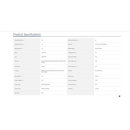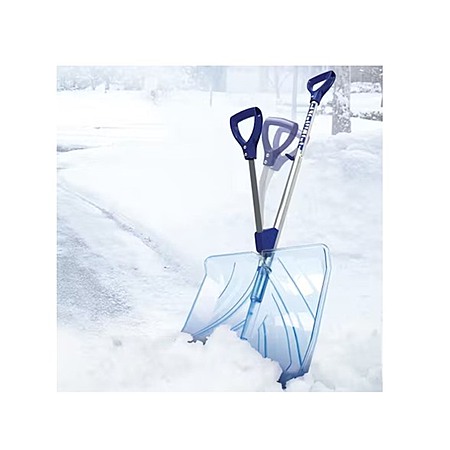 - Wide 18-inch shovel blade with heavy-duty poly wear strip