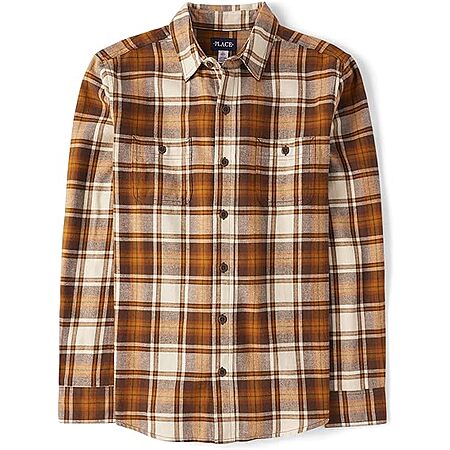 The Children's Place Men's 100% Cotton Long Sleeve Flannel Button Up Shirt (Buffalo Plaid-Dad or Plaid - Dad) $14.99 + Free Shipping w/ Prime or on $35+