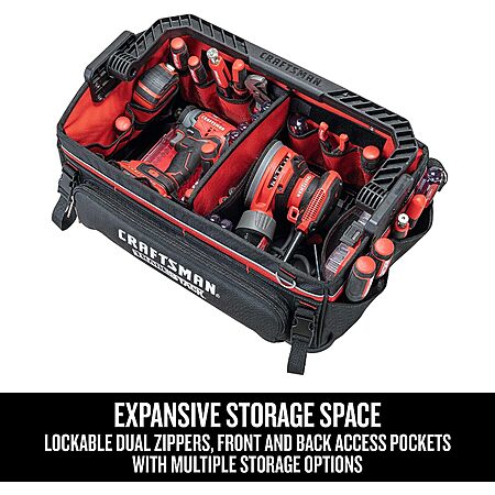 CRAFTSMAN TRADESTACK System Tool Bag, Heavy Duty Open Mouth Tool Tote, Waterproof Hard Bottom, Folding Handle (CMST21451) $49.98