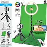 Bower Content Creator Kit: 16" Ring Light, 62" Tripod & 5'x7' Green Screen w/ 7 Special Effect Light Modes $15 + Free Shipping w/ Walmart+ or on Orders $35+