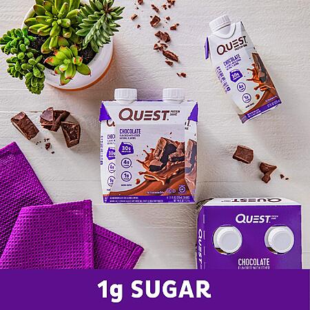 - Box contains 12 Chocolate flavored Quest Protein Shakes