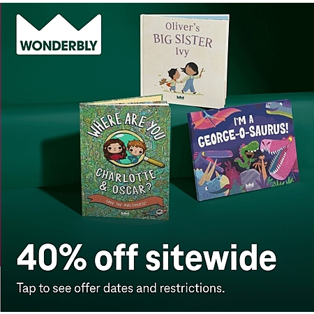 Take 40% off personalized books at wonderbly.com.