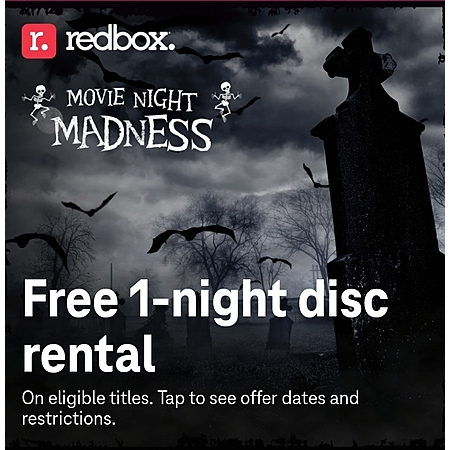 Have a frightfully good time at your next movie night with a free one-night eligible Blu-ray Disco or DVD rental from Redbox.