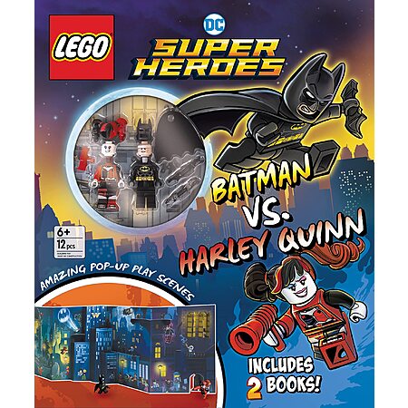- Including 2 action-packed books, 2 LEGO minifigures (Batman and Harley Quinn), and a pop-up play scene, this set will inspire creative play and encourage kids to imagine new adventures featuring their favorite heroes from the world of LEGO DC Comics Super Heroes.