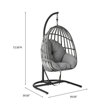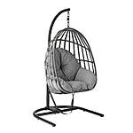 Mainstays Wicker Outdoor Patio Hanging Egg Chair w/ Metal Stand & Cushion (Gray)