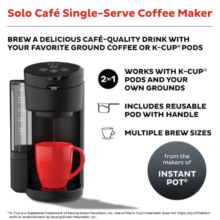 Instant Solo Café 2-in-1 Single Serve K-Cup / Ground Coffee Maker (Black)