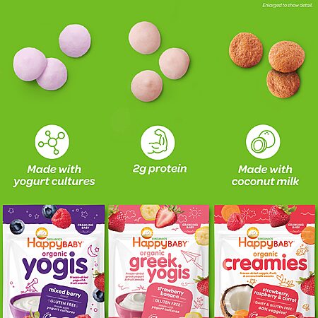 1-Oz Happy Baby Organics Greek Yogis Freeze-Dried Greek Yogurt (Strawberry/Banana) $2.27 w/ S&S + Free Shipping w/ Prime or on $35+