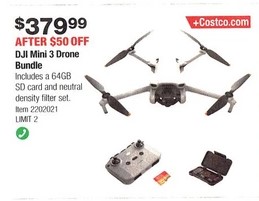 DJI Mini 3 Drone Aerial Camera Bundle at Costco $379.99