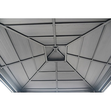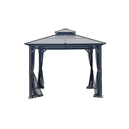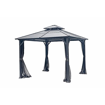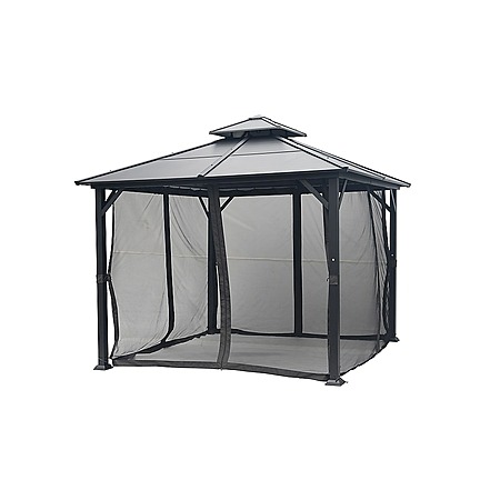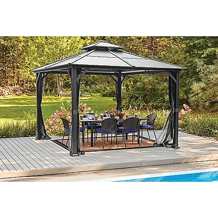 Style Selections 10' x 10' Dark Gray Frame and Black Fabric Metal Square Screened Gazebo with Steel Roof $408