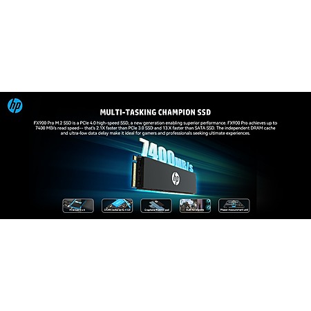 Model: HP FX900 Pro 4TB NVMe Gen 4 Gaming SSD - PCIe 4.0, 16 Gb/s, M.2 2280, 3D TLC NAND Internal Solid State Hard Drive with DRAM Cache Up to 7400 MB/s - 4A3U2AA#ABB