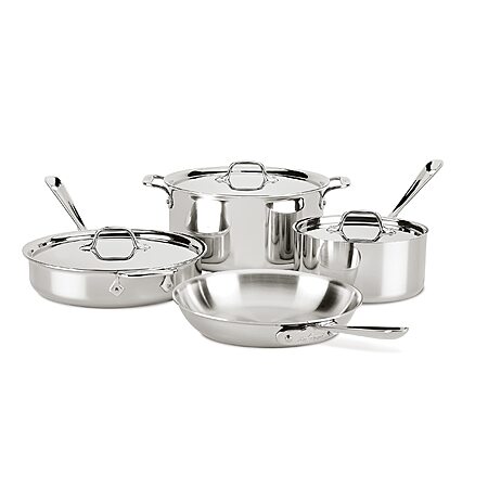 All-Clad D3 3-Ply Stainless Steel Cookware Set 7 Piece Induction Oven Broil Safe 600F Pots and Pans,Silver $349.99