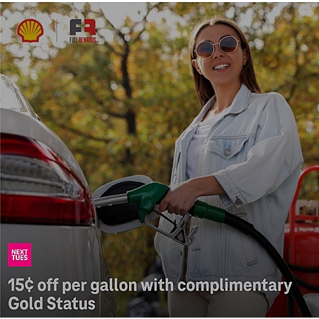 Shell: 15 cents off per gallon w extended Gold Status