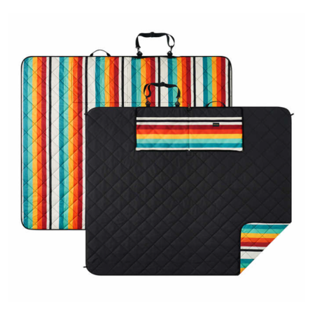 I'll add on as I've had one for a while: for the price this is great and convenient for picnics and such. the quality is fine, the stitching leaves a lot to be desired and I'm curious to see how it'll hold up long term. The folding and carry of the blanket is easy and incredibly convenient. i think these make great gifts.