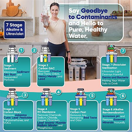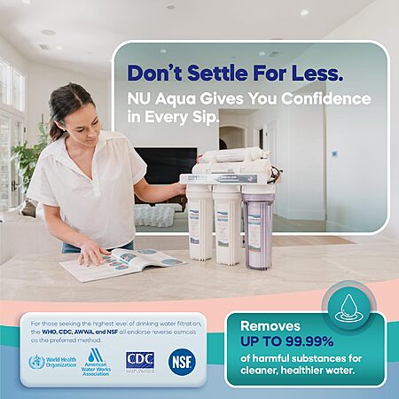 NU Aqua 7-Stage UV & Alkaline Under Sink Reverse Osmosis Water Filter System (WU-100GPD-NP-UV-ALk) on sale for $207.96.