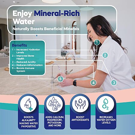 - ALKALINE REMINERALIZATION FILTER: PH Positive mineral-rich water right from the tap,