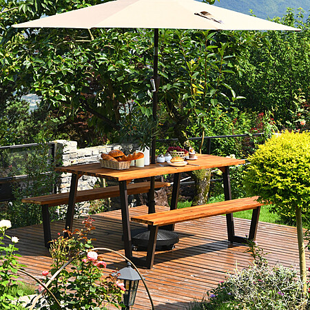 Costway Outdoor Dining/Picnic Table w/ Benches & Umbrella Hole $240 + Free Shipping